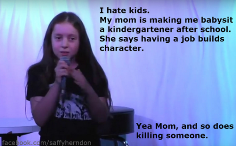 Saffron Herndon might be just 10 years old, but her stand-up comedy career is already thriving. She's performed in comedy clubs in Texas and Michigan, and Parks and Rec actress Audrey Plaza even made their selfie her profile picture.